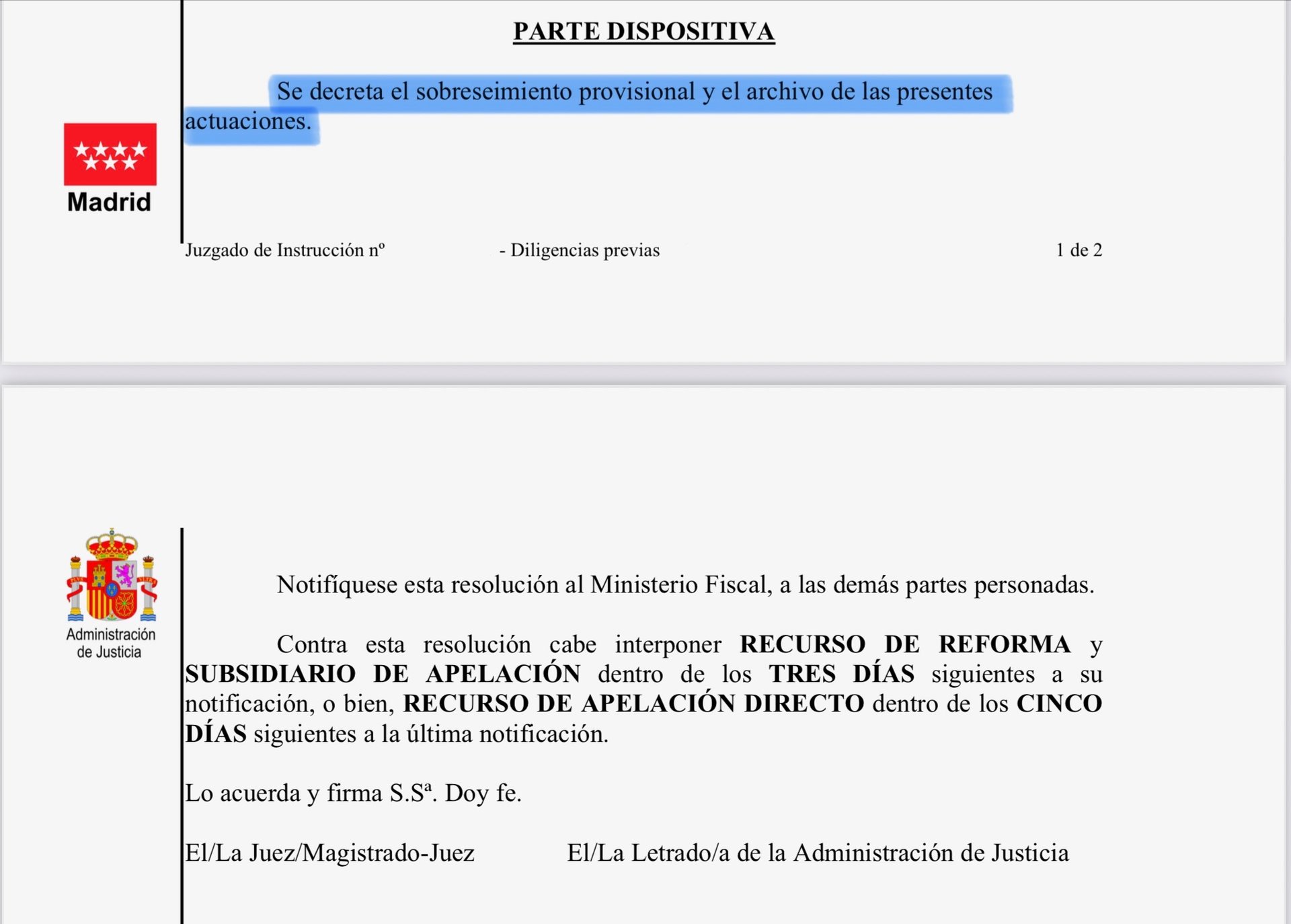 La estrategia planteada y el esfuerzo de defensa desarrollado en el procedimiento tuvieron un efecto positivo, consiguiendo el sobreseimiento provisional y archivo de las actuaciones durante la fase de instrucción, de tal forma que se dio por finalizado el procedimiento y jamás se abrió juicio oral contra nuestro cliente.